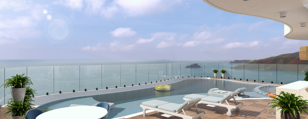 El volumen del edificio se manifiesta con balcones curvos inspirados en el movimiento del agua, desde los cuales se pueden observar las puestas de sol en el mar Caribe. A su vez, cada terraza sirve como espacio de ocio y recreación privados para cada apartamento.